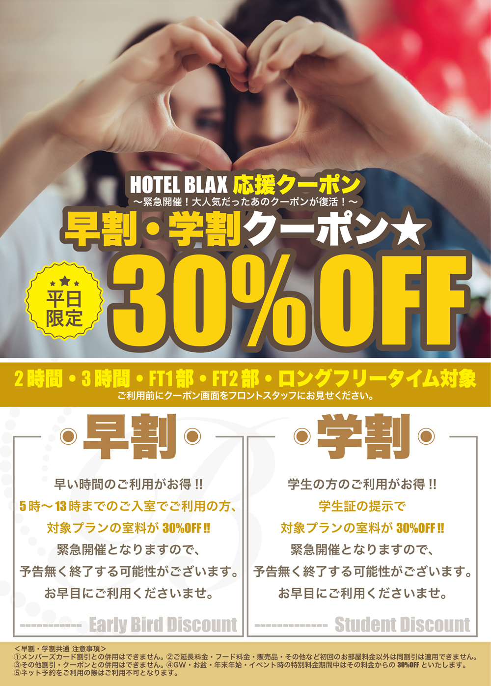 3/12より学割・早割クーポン利用開始